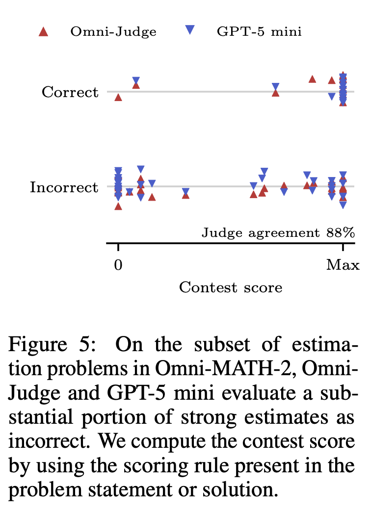 Dominant Judge Miscalibration: Expert annotations of disagreements revealed that, once dataset errors were excluded, Omni-Judge was incorrect in 96.4% of cases. This demonstrates that judge incompetence can mask true model improvements well before a benchmark actually saturates.