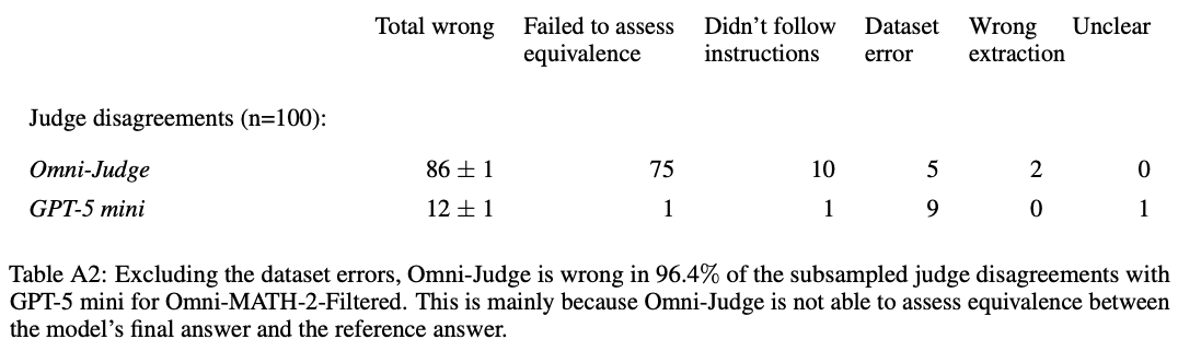 Equivalence Failures: 75% of Omni-Judge’s errors were due to failing to recognize equivalent answers.